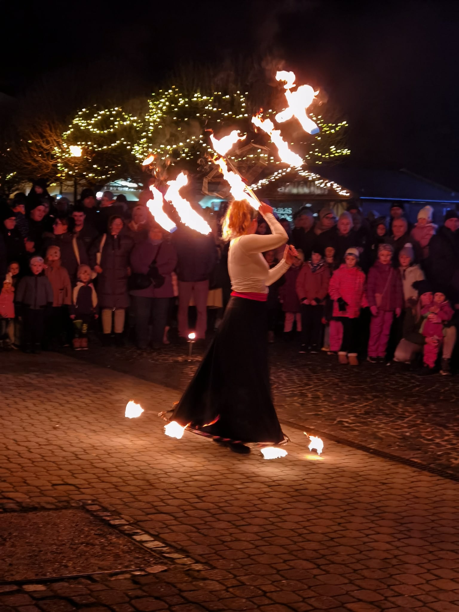 ✨ Szikrázó és parázsló elemek – Mint a csillagszórók a karácsonyfán, a tűzzsonglőr eszközeink is szikrázva, izzó parazsat szórva teszik még varázslatosabbá az előadást.